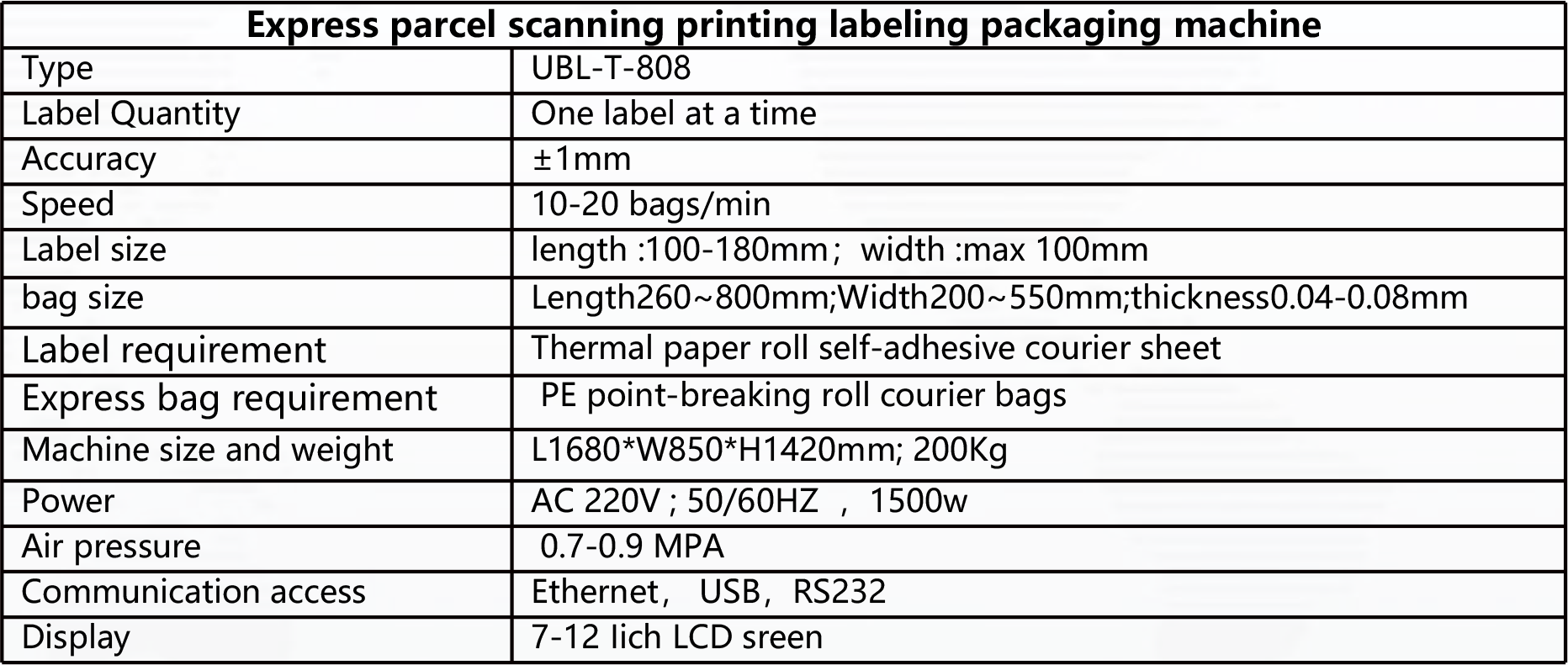 EXPRESS PARCEL SCANNING PRINTING LABELING PACKAGING MACHINE