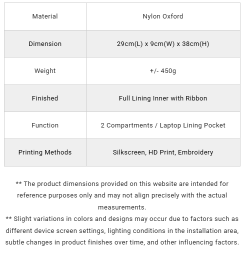 Sling Bag /29cm(L) x 9cm(W) x 38cm(H)/ SL17