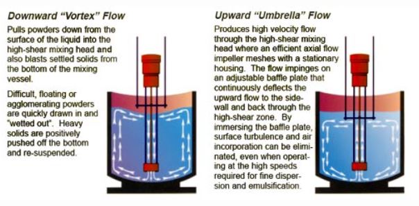High shear dispersion and emulsification plus - wet out powders and resuspend settled solids.