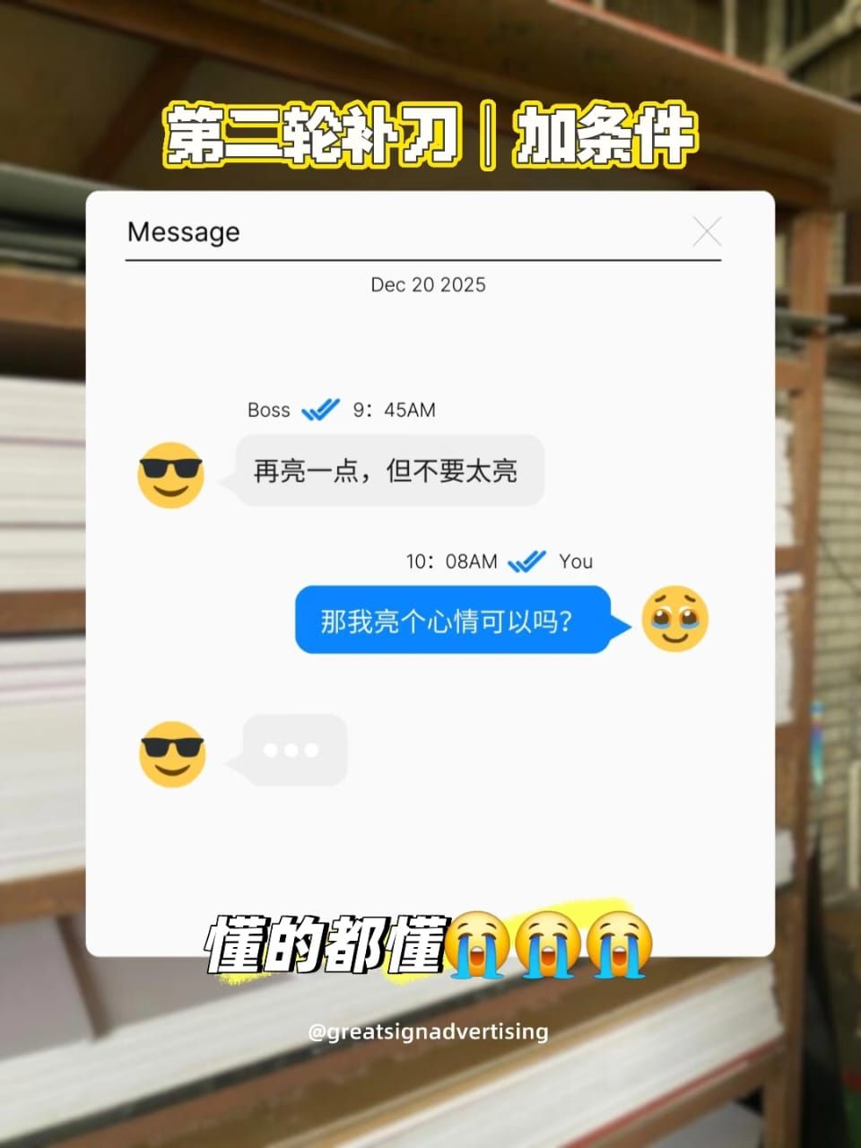 The boss¡¯s god-level demands are back again. The signage designer is completely drained. - Great Sign Advertising (M) Sdn Bhd