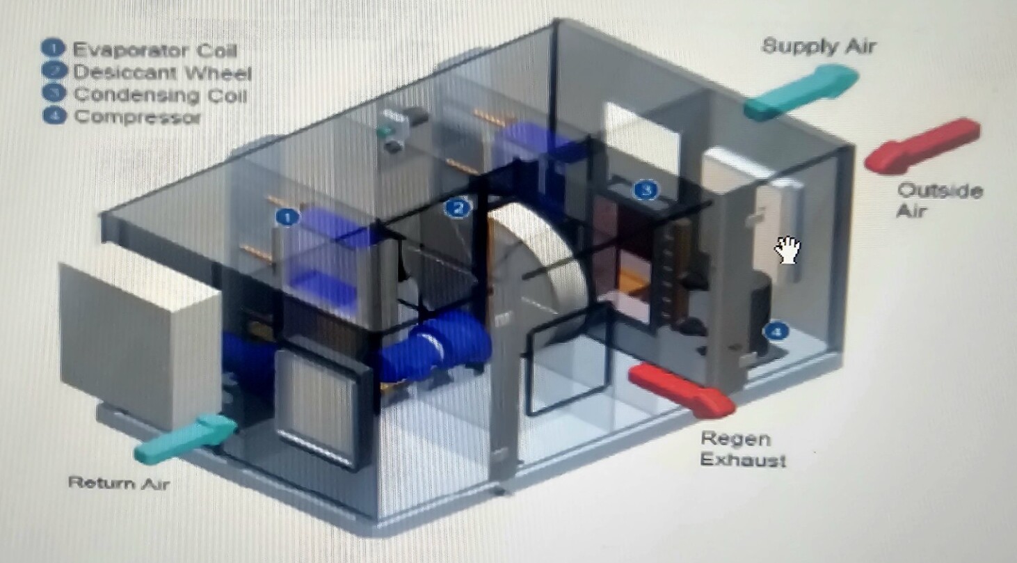 • Energy-Efficient Operation: Reuses rejected heat from the cooling cycle to reactivate the desiccant wheel, reducing energy consumption by up to 40%.