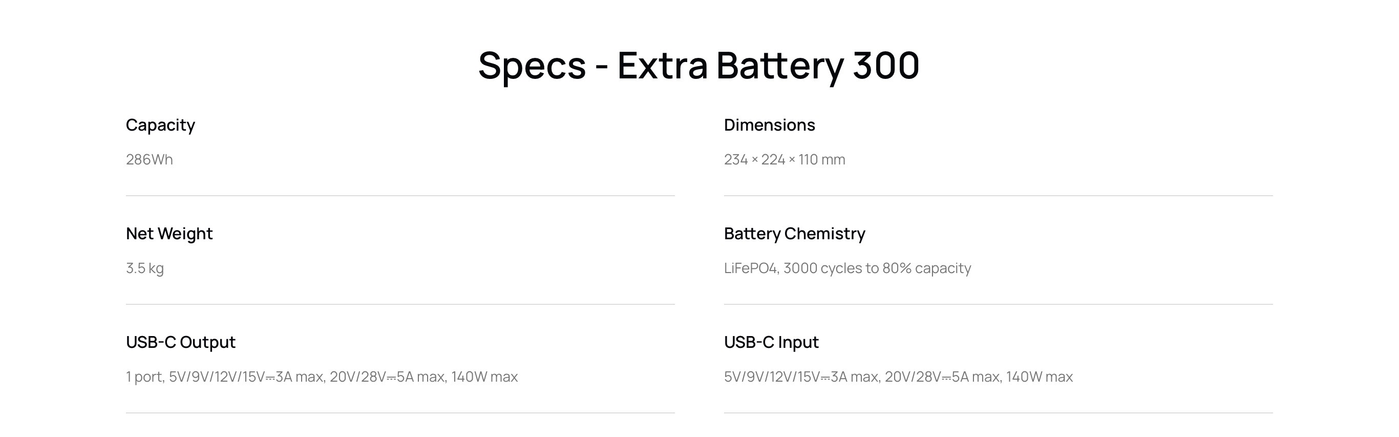 Weighing just 3.5 kg, the EB300 is lightweight, with a compact design and USB-C input and output port, making the Extra Battery highly convenient for on-the-go use. The Extra Battery offers the perfect solution for short outdoor trips with minimal devices to expand your possibilities.